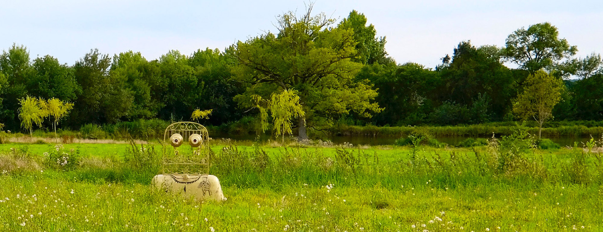 After the performance, I re-created the bathtub to resemble a Kinari, a half-bird and half- human mythical creature symbolising beauty, grace and accomplishment. From death to life through the cleansing ritual, Nana Kinari transgresses cultural and temporal meanings and creates a new narrative, one of a protector of the land. Nana Kinari, painted with gold and tattooed with 16th century sketches of Philippine inhabitants from the Boxer Codex, sits across the field from the existing statue, whose head was shot at with a gun by the château’s previous owner.